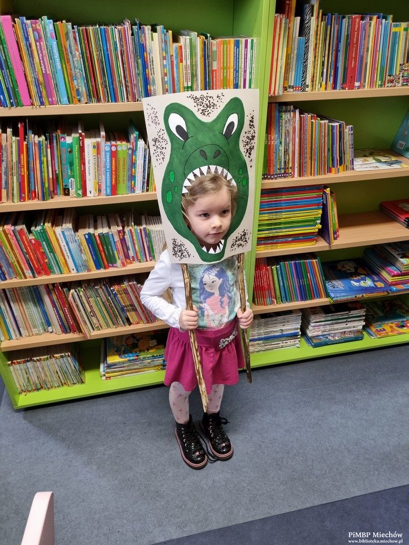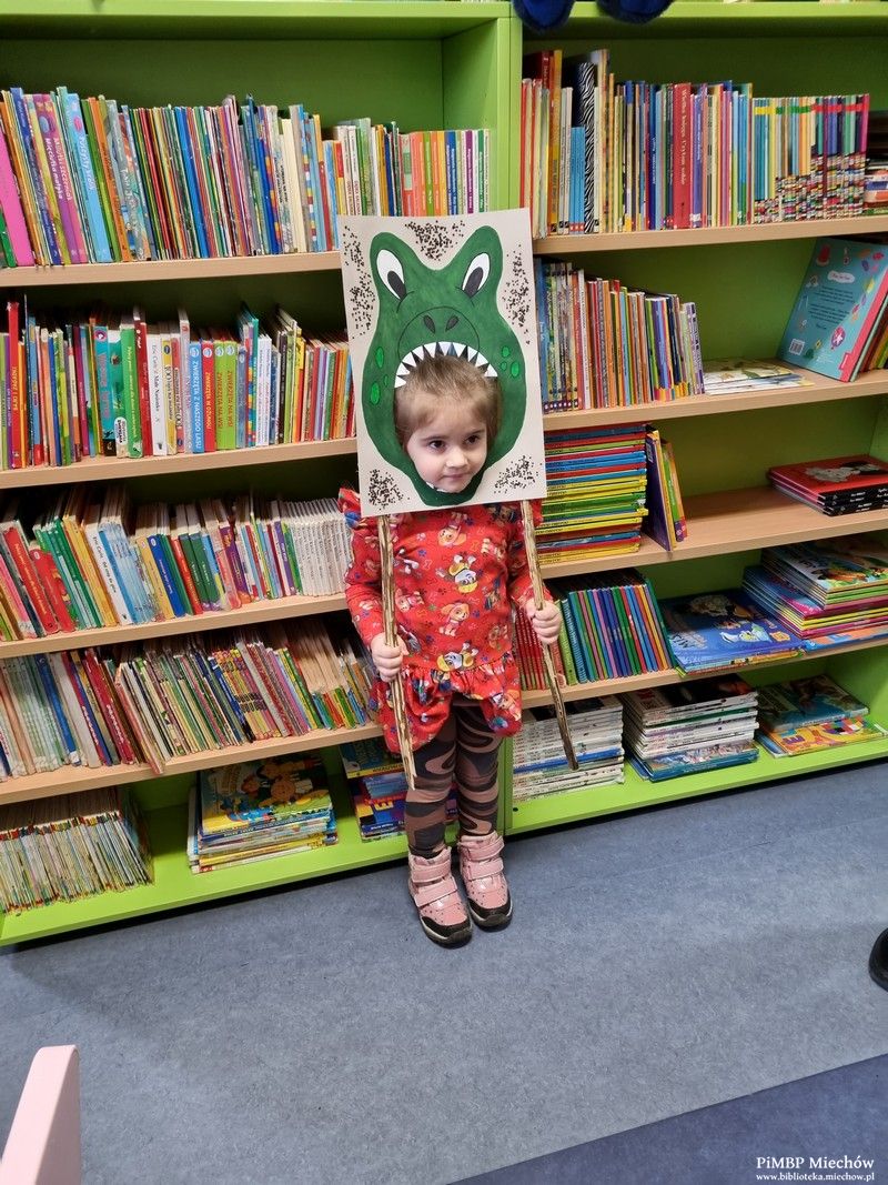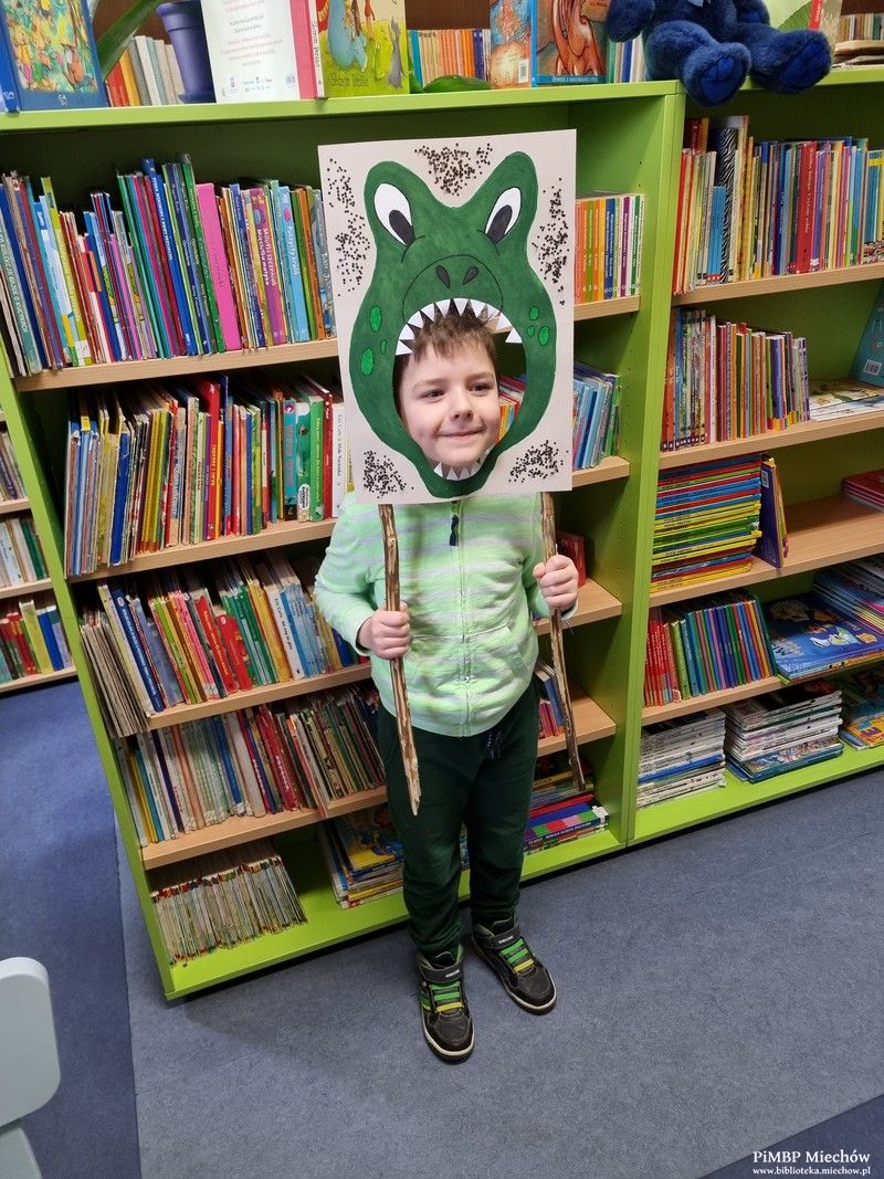 Na koniec przedszkolaki odwiedziły Oddział Biblioteczny dla Dzieci i Młodzieży oraz wykonały sobie zdjęcie w naszej dinozaurowej „fotobudce”.