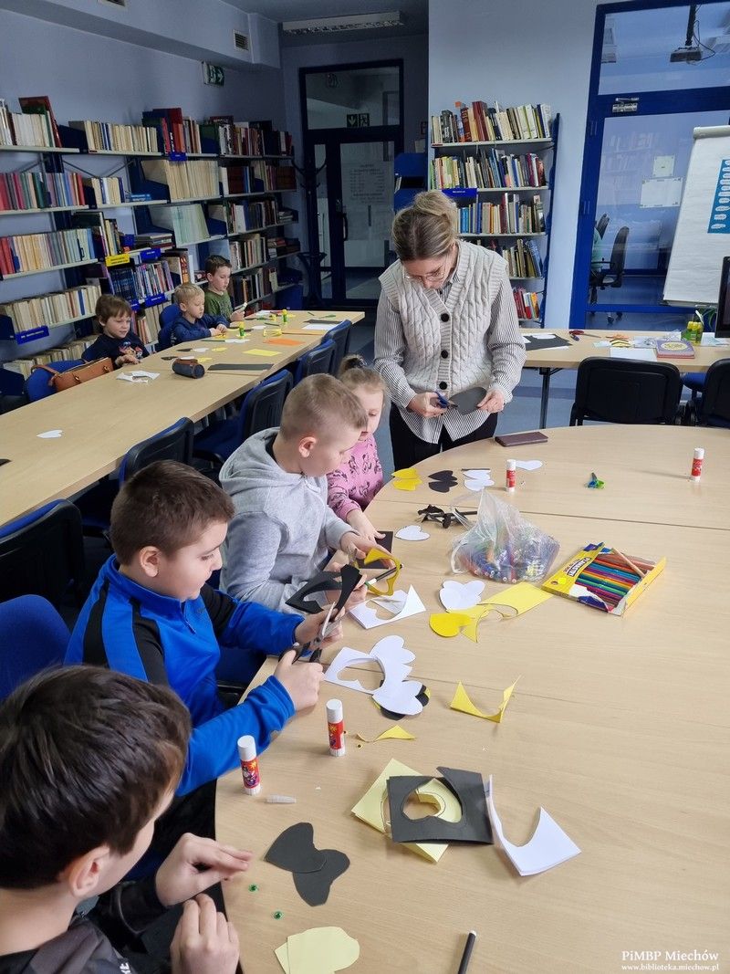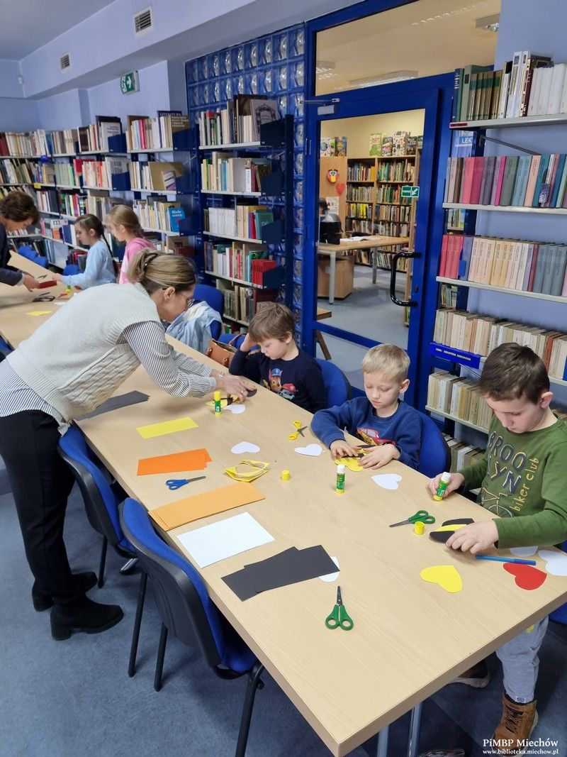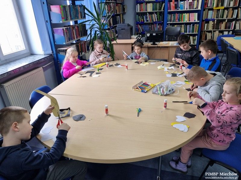 Tradycyjnie już zajęcia w miechowskiej bibliotece zwieńczyliśmy pracą plastyczną. Z papierowych serduszek powstała… pszczółka. I w jej przypadku też musimy uważać na ortografię – przecież to wyjątek! Aha, no i wypatrujmy znaków, bowiem gdy jaskółka i pszczółka lata, znakiem to wiosny dla świata 🙂