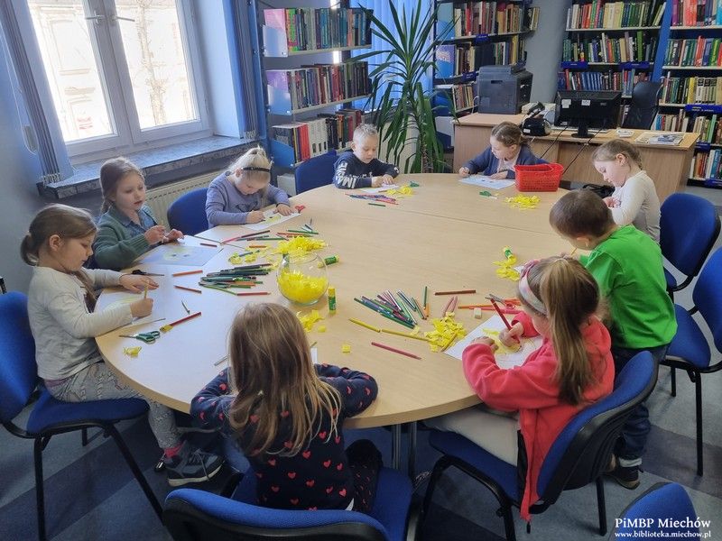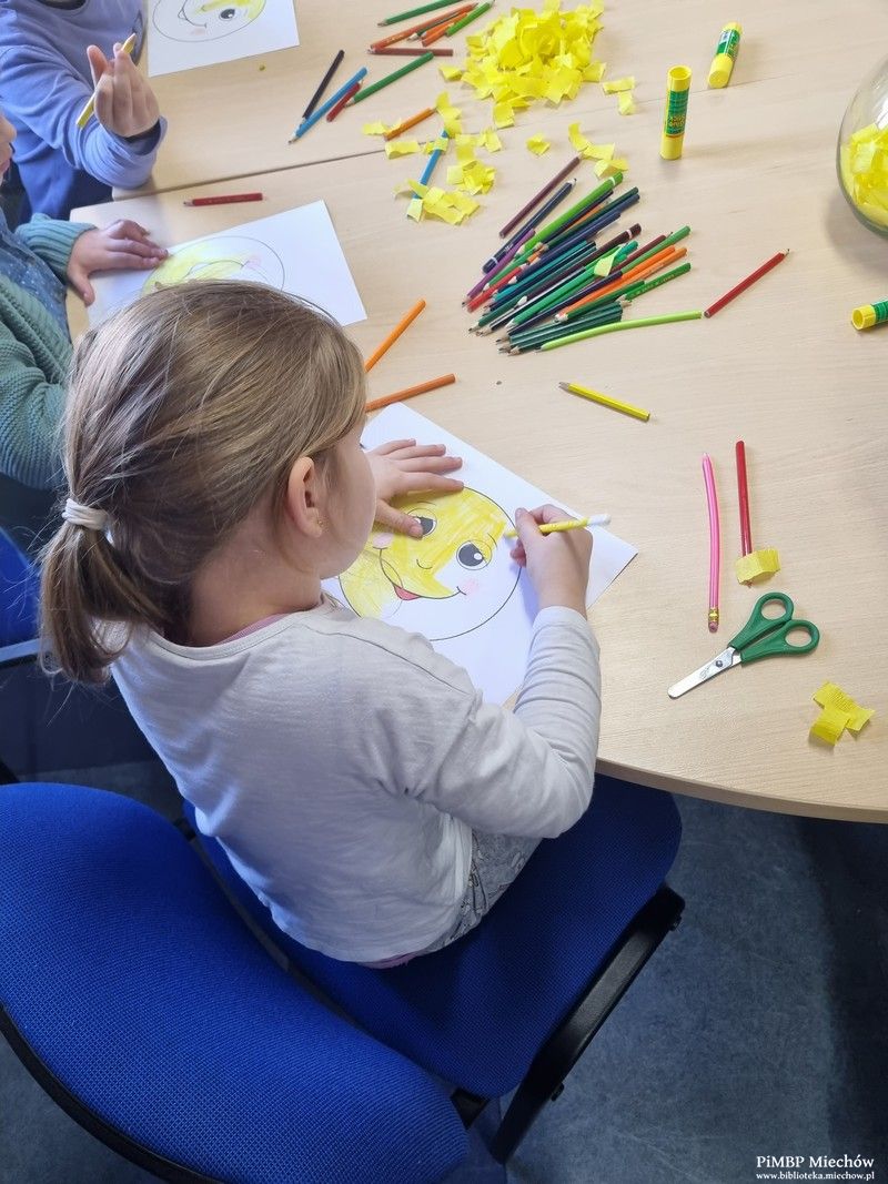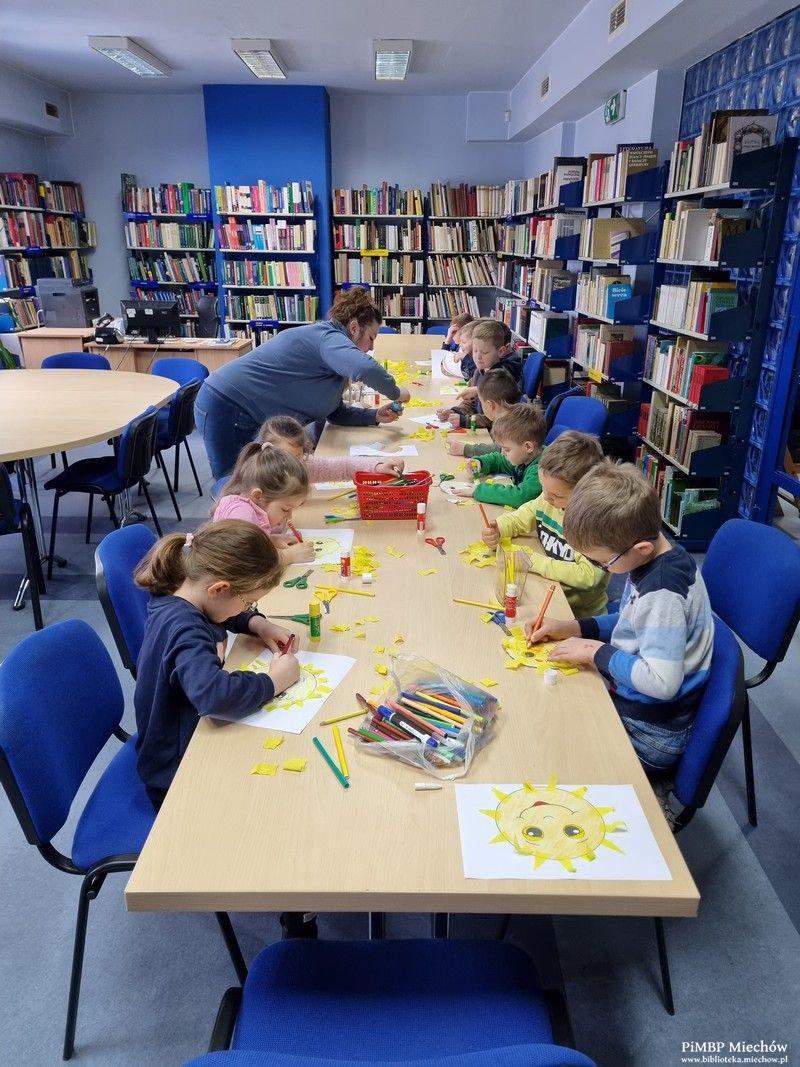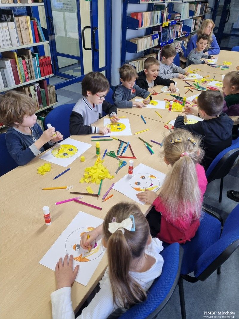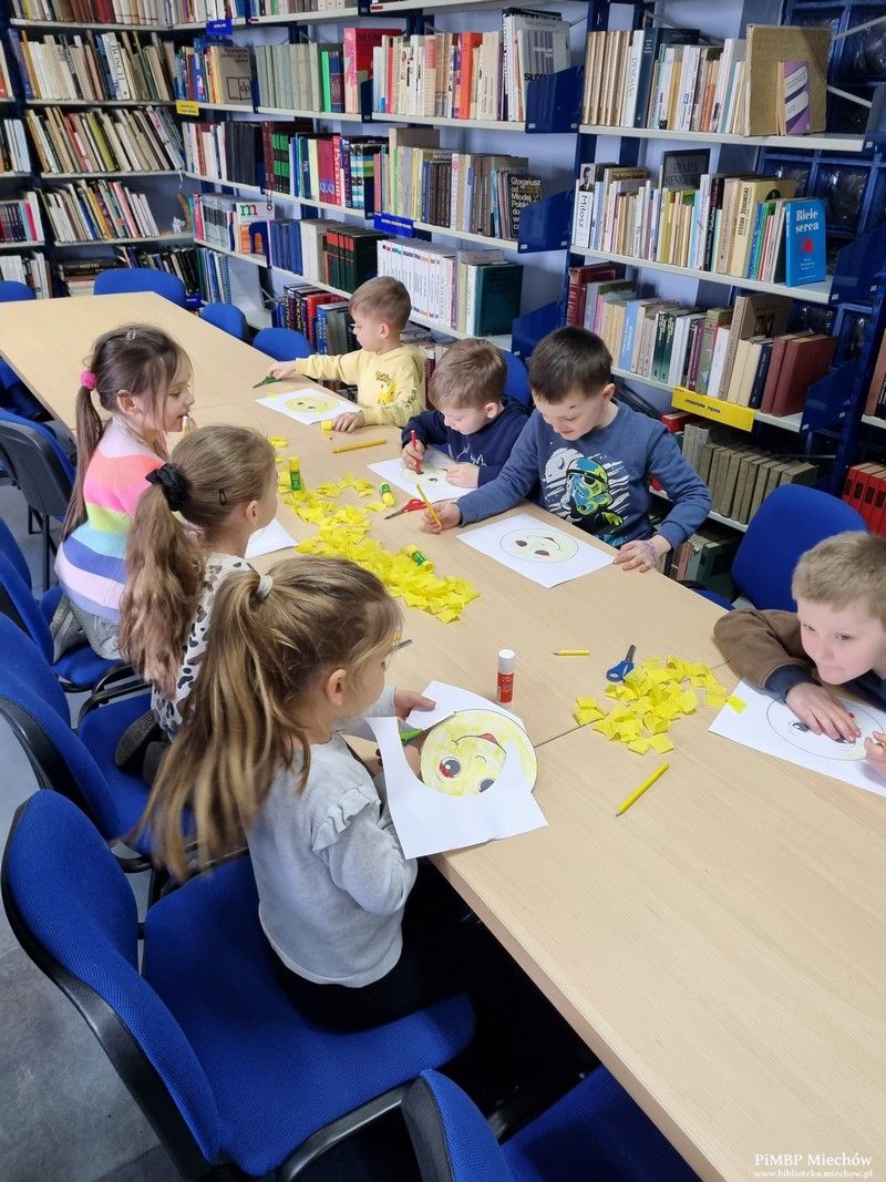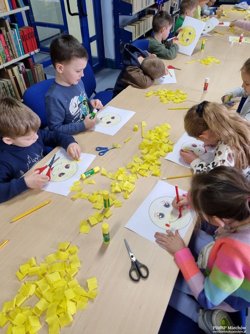Poza tym odczytaliśmy Dzieciom „Wierszyki na pogodę i niepogodę” (w końcu marzec lubi i jedno, i drugie), samemu słoneczku za to stworzyliśmy na urodziny jego „portret” z bibuły i papieru. A tych urodzin będzie jeszcze sporo – całe miliardy! Naszym małym gościom życzymy ciepła olbrzymiej gwiazdy na każdy dzień życia.