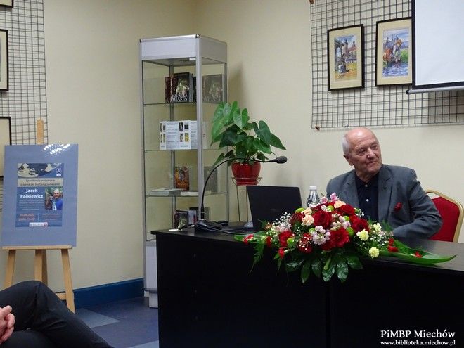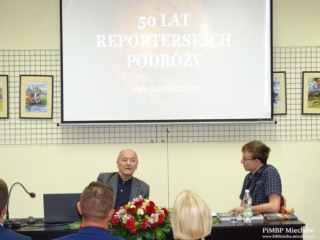 Mieszkający na co dzień we Włoszech – w urokliwej miejscowości Bassano del Grappa – 2 czerwca obchodził okrągłe 80. urodziny. Urodził się w 1942 roku w niemieckim obozie pracy w Immensen. Symboliczne, że przyszedł na świat w niewoli, zaś w ciągu swojego jakże bogatego życia udowodnił (i wciąż udowadnia) brak jakichkolwiek barier. Był na sześciu z siedmiu kontynentów, poznawał pierwotne ludy Borneo i Ameryki Południowej, przecierał szlaki najgorętszych (Sahara, Kara-kum) i najzimniejszych (Syberia) miejsc globu. 10 czerwca br. do naszej Książnicy przybyła postać być może ostatniego z wielkich eksploratorów trzeciej planety Układu Słonecznego. Kilka minut po godzinie szesnastej rozpoczęliśmy spotkanie, które na długo zapadnie w pamięć pracowników oraz Czytelników miechowskiej Biblioteki. Tym bardziej że dzieła Jacka Pałkiewicza są u nas niezwykle popularne.