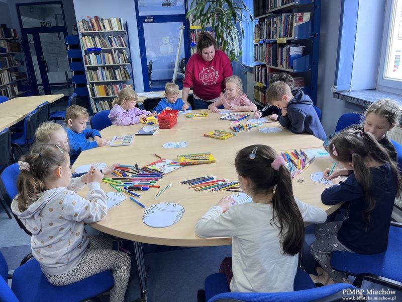 24 marca z kolei o przysłowiach dyskutowaliśmy z podopiecznymi Przedszkola Samorządowego Nr 1 w Miechowie. Zapoznaliśmy się z trzema rymowankami: „Dokuczliwy Maciuś, czyli Nie śmiej się, dziadku, z czyjegoś przypadku”, „Przedszkolna draka, czyli Nie czyń drugiemu, co tobie niemiłe” oraz „Pogodowe psoty, czyli W marcu jak w garncu”. W nawiązaniu do ostatniego z przysłów dzieci okrasiły swoimi artystycznymi wizjami papierową wycinankę w kształcie garnca. Znalazły się na nim deszcz, śnieg, ciemne chmury, ale i słoneczko czy pączkujące roślinki.