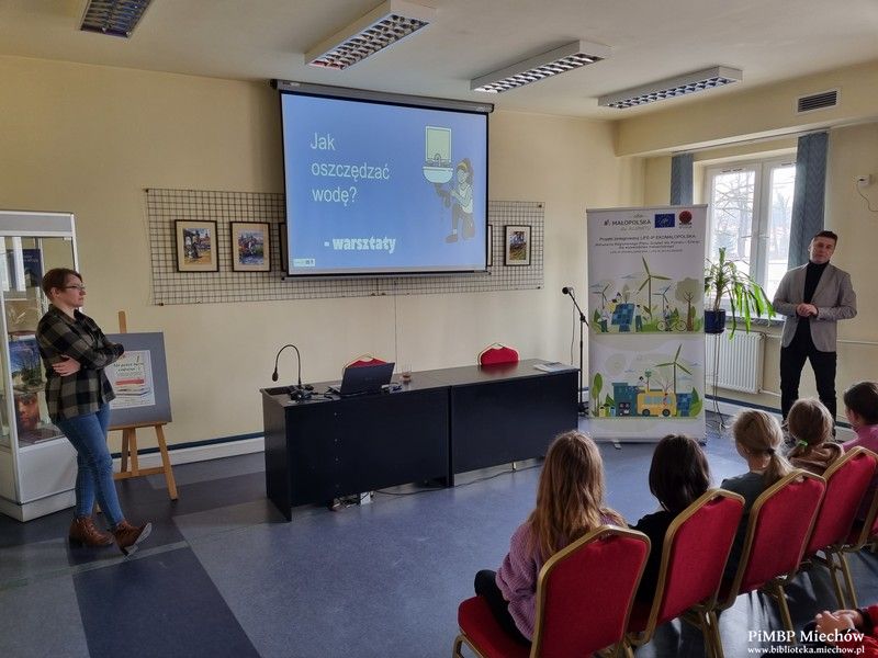 Spotkanie rozpoczęła Marzena Wiejak, doradca ds. klimatu i środowiska ze Starostwa Powiatowego w Miechowie oraz Paweł Wilk, Prezes Zakładu Wodociągów i Kanalizacji w Miechowie. Opowiedzieli między innymi o jakości wody z kranu (można pić!), a także o sposobach na oszczędzanie wody. Po części teoretycznej odbyły się warsztaty plastyczne. Na zakończenie, każdy z uczestników otrzymał butelkę filtrującą oraz orzechy piorące w prezencie.