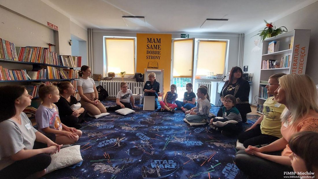Ostatnie spotkanie w ramach Tygodnia Bibliotek odbyło się w naszej nowej filii na Osiedlu Parkowym. Podczas spotkania rodziców i dzieci w Klubie Opowieści zastanawialiśmy się gdzie mieszka szczęście i jak je znaleźć. Spotkanie było niezwykle inspirujące. Uczestnicy z entuzjazmem brali udział w dyskusjach i aktywnościach, a na koniec każdy otrzymał legitymację członka Klubu Opowieści, na której można zbierać naklejki podczas kolejnych spotkań. Wspólnie spędzony czas był pełen ciepła i wzajemnego wsparcia, co jeszcze bardziej zintegrowało naszą społeczność.